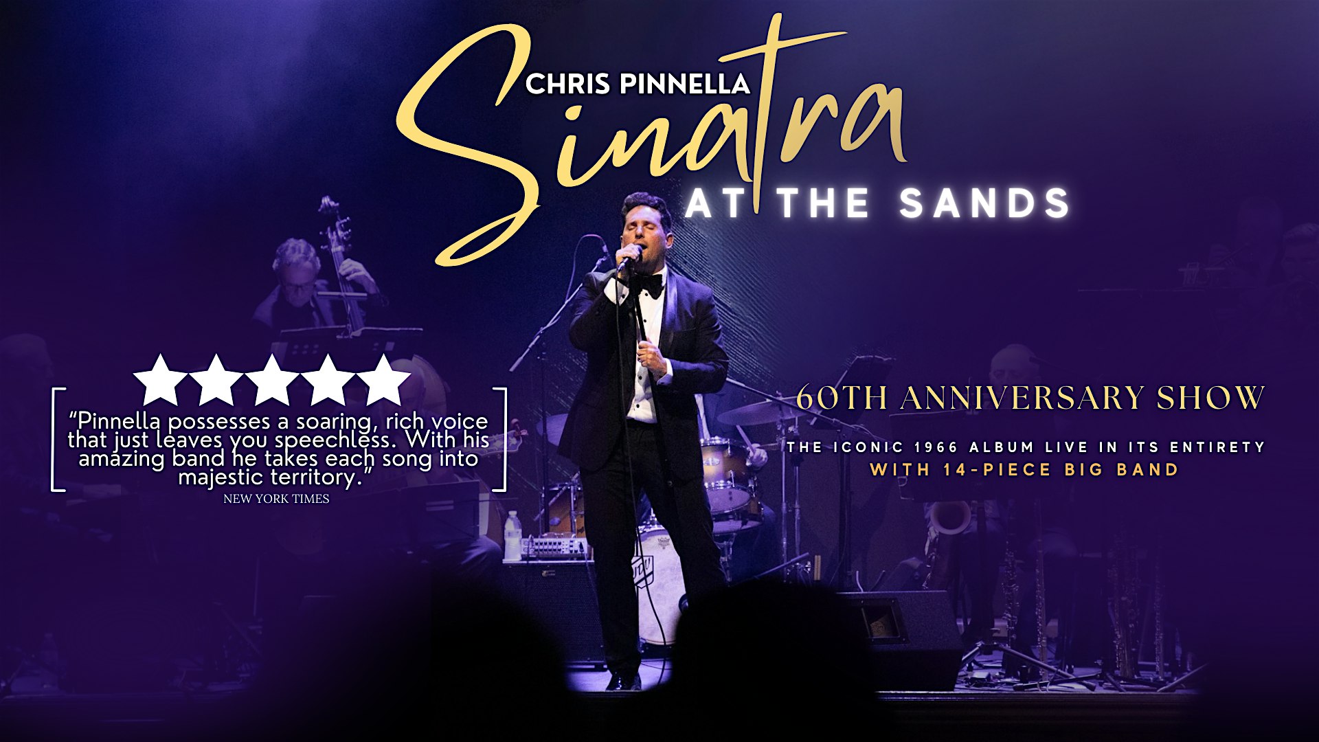 From the swinging swagger of “Fly Me to the Moon” and “Come Fly With Me” to the irresistible drive of “I’ve Got You Under My Skin,” every moment of the album is faithfully recreated. Throughout the performance, original audio clips of Frank Sinatra himself are woven in—Old Blue Eyes cracking jokes, setting up songs, and working the room—allowing Pinnella’s orchestra to seamlessly launch into hit after hit, just as it unfolded on that legendary Vegas stage.