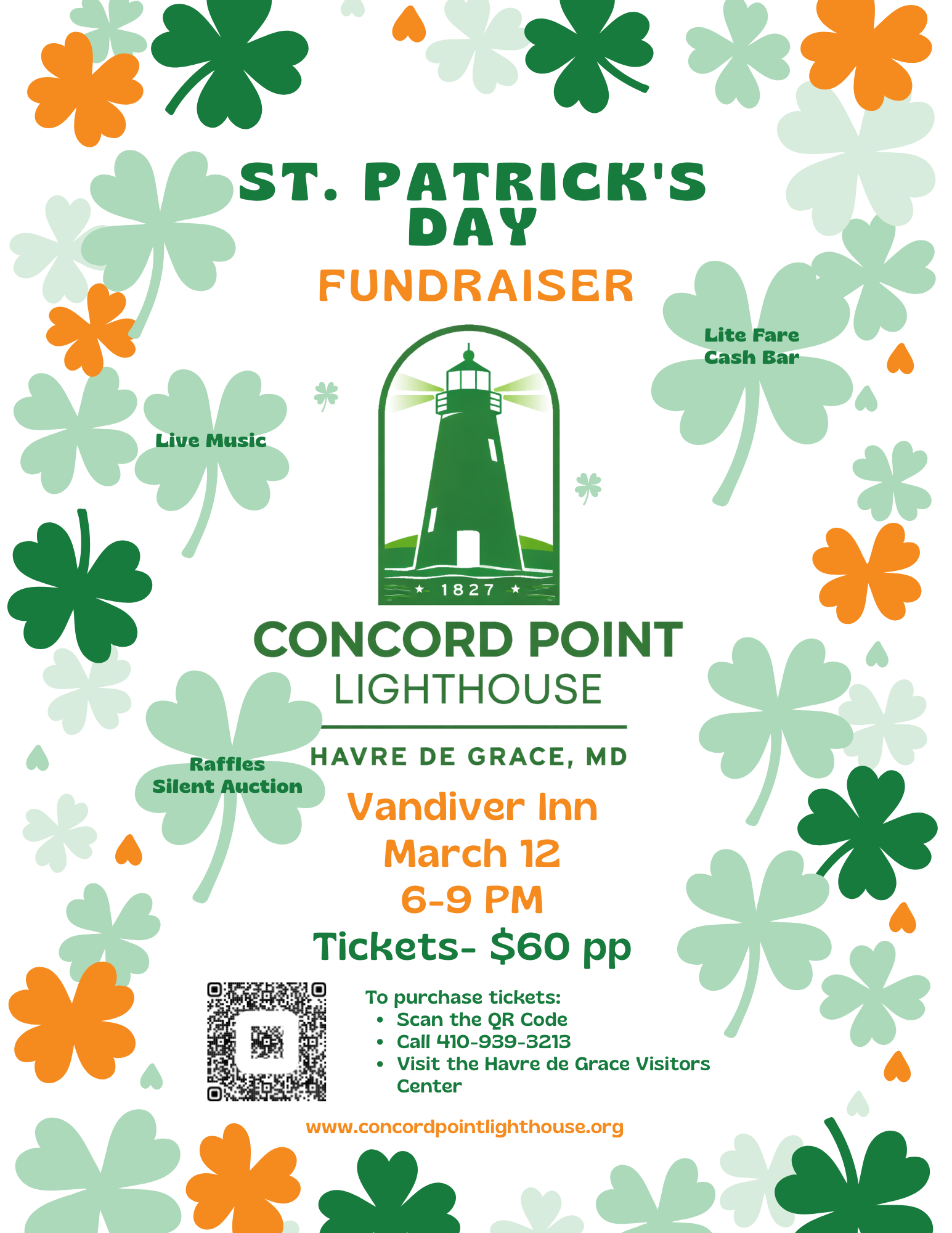 Join the Friends of the Concord Point Lighthouse to celebrate St. Patrick’s Day and support us at our biggest fundraiser of the year! Enjoy lite fare and Celtic music provided by Kaydence while bidding on silent auction items and trying your luck with our raffles. A Cash Bar will be available.