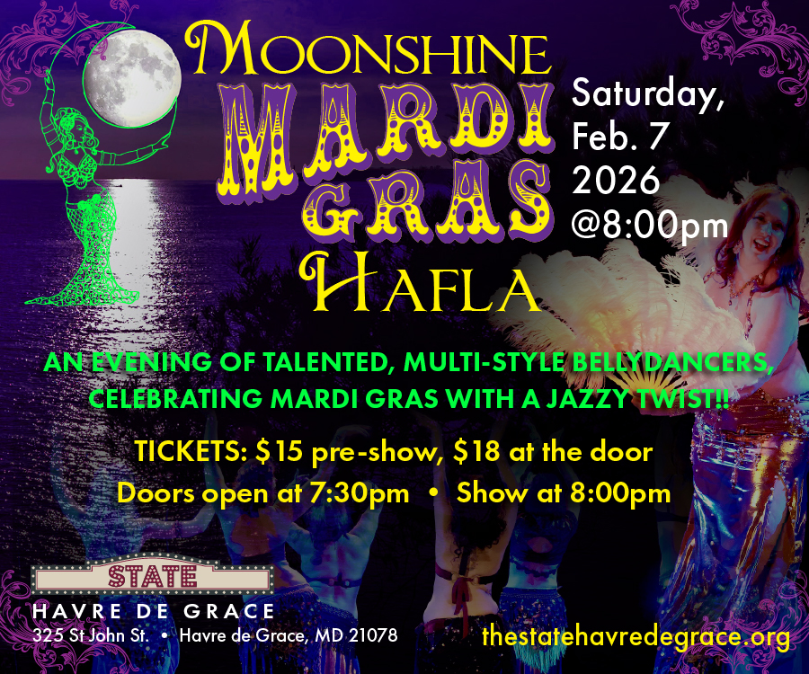 Feb 7 8:00 pm - 10:00 pm Live on Stage at The State: Moonshine Mardi Gras Hafla Bellydancing! $15.00 – $18.00